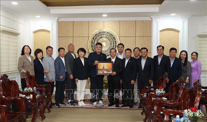 Chiều 7/11/2025, UBND tỉnh Tây Ninh tiếp đón trọng thể Đoàn Ủy ban Công nghiệp và xã hội - Hội đồng thành phố Gimhae, Hàn Quốc. Đây là sự kiện quan trọng nhằm tăng cường mối quan hệ hợp tác đã được thiết lập từ lâu giữa hai địa phương, tập trung thảo luận về các lĩnh vực mũi nhọn như phát triển du lịch, thu hút đầu tư và đặc biệt là hỗ trợ công dân hai nước sinh sống và làm việc. Ảnh: Thanh Tân - TTXVN