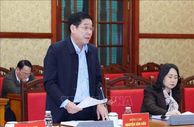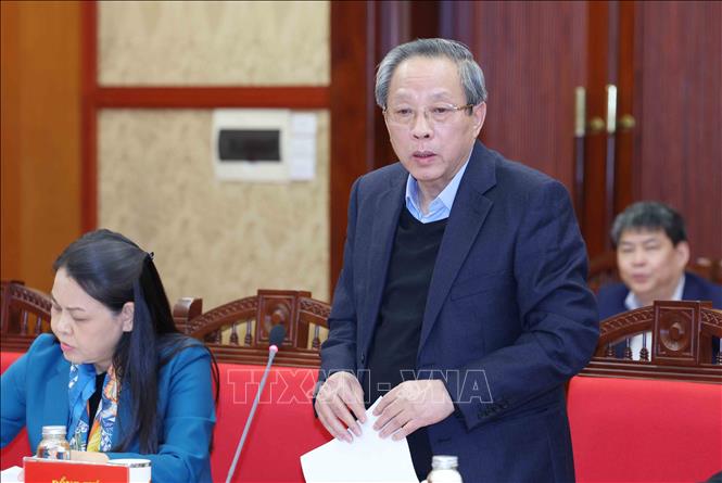 Đồng chí Hoàng Đăng Quang, Uỷ viên Trung ương Đảng, Phó Trưởng Ban Thường trực Ban Tổ chức Trung ương phát biểu tại buổi làm việc. Ảnh: Phương Hoa – TTXVN