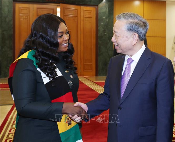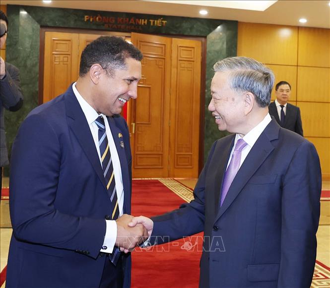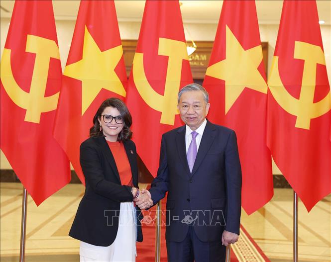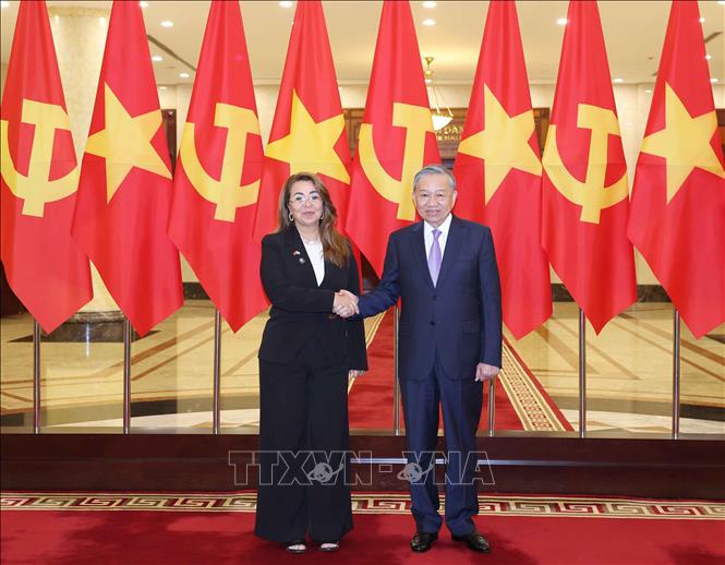 Tổng Bí thư Tô Lâm và Phó Tổng thống Ecuador María José Pinto González Artigas. Ảnh: Thống Nhất – TTXVN