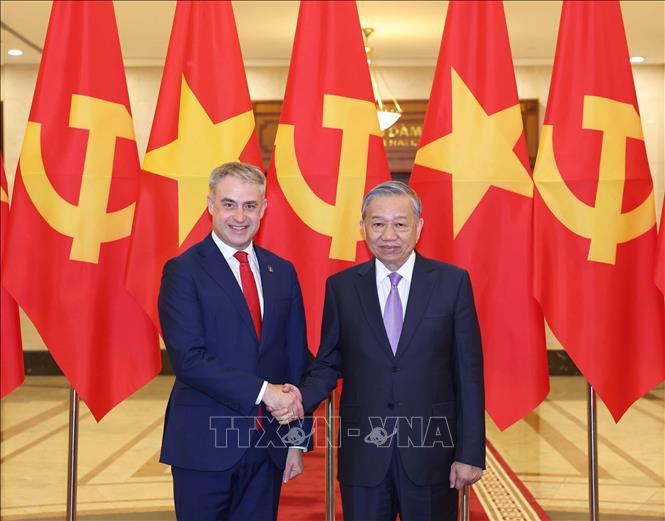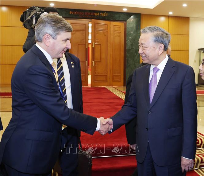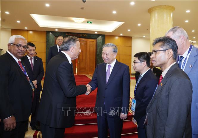 Tổng Bí thư Tô Lâm tiếp Trưởng đoàn các nước tham dự Lễ mở ký Công ước Liên hợp quốc về chống tội phạm mạng. Ảnh: Thống Nhất – TTXVN