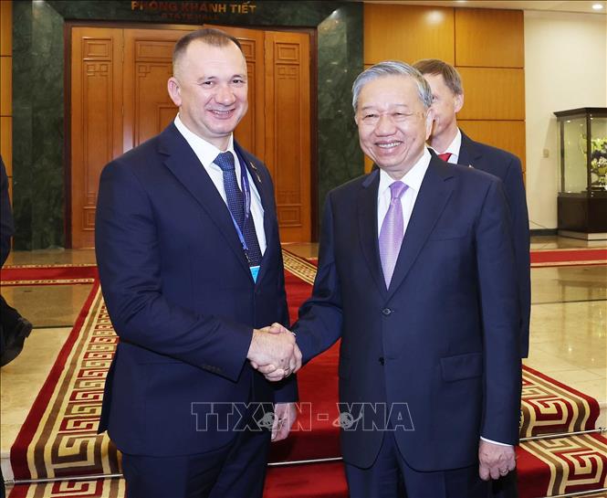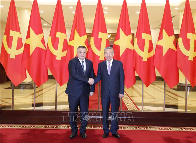 Tổng Bí thư Tô Lâm và Tổng Công tố Nga Alexander Vladimirovich Gutsan. Ảnh: Thống Nhất – TTXVN