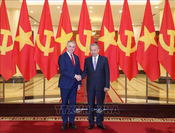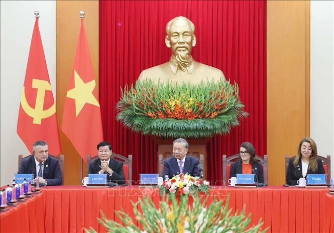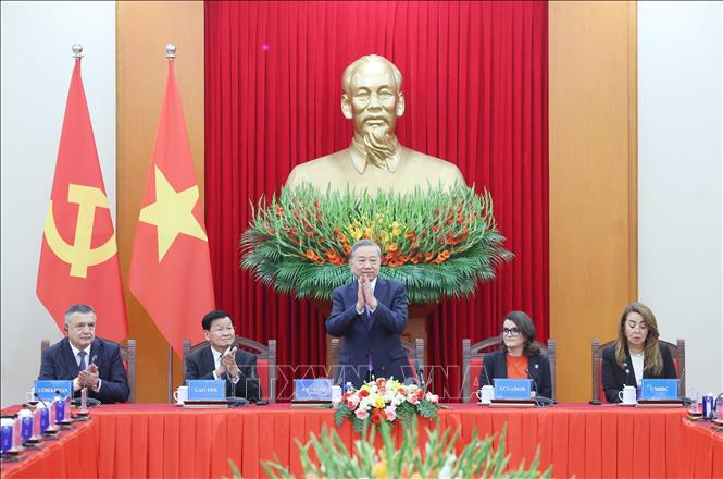 Tổng Bí thư Tô Lâm và các trưởng đoàn. Ảnh: Thống Nhất – TTXVN