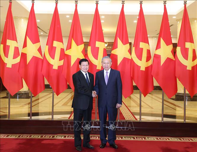 Tổng Bí thư Tô Lâm và Tổng Bí thư, Chủ tịch nước Lào Thongloun Sisoulith. Ảnh: Thống Nhất – TTXVN