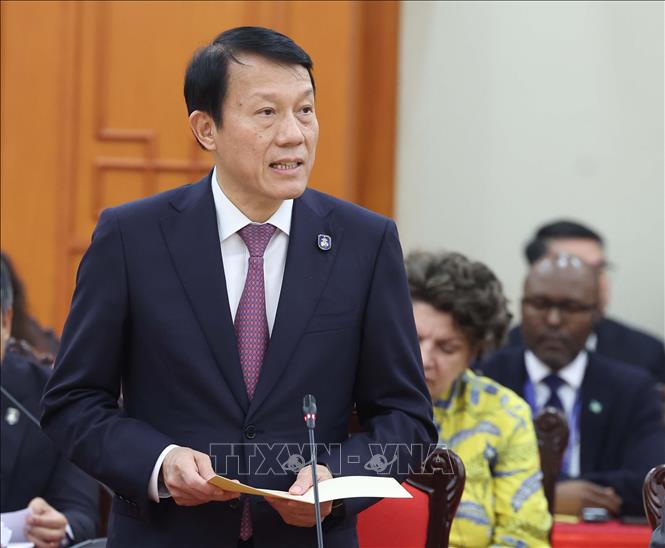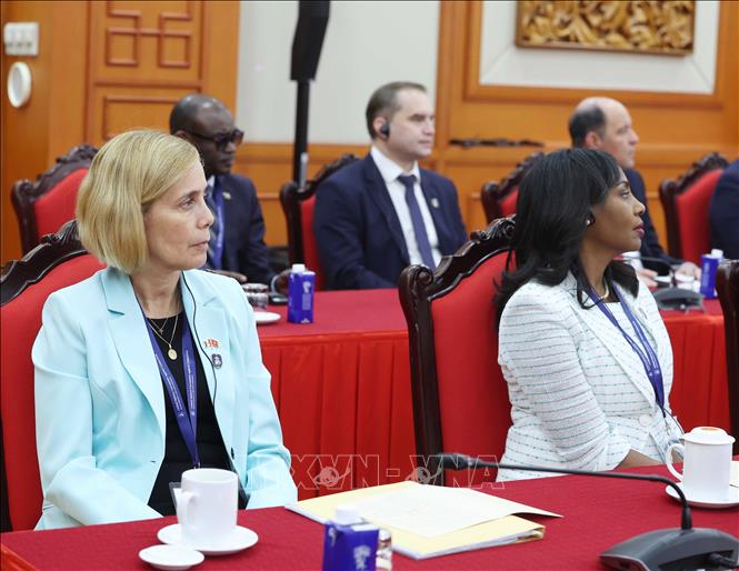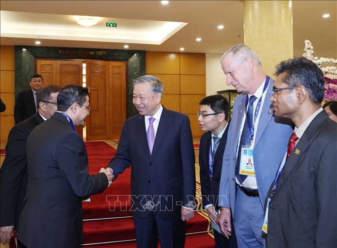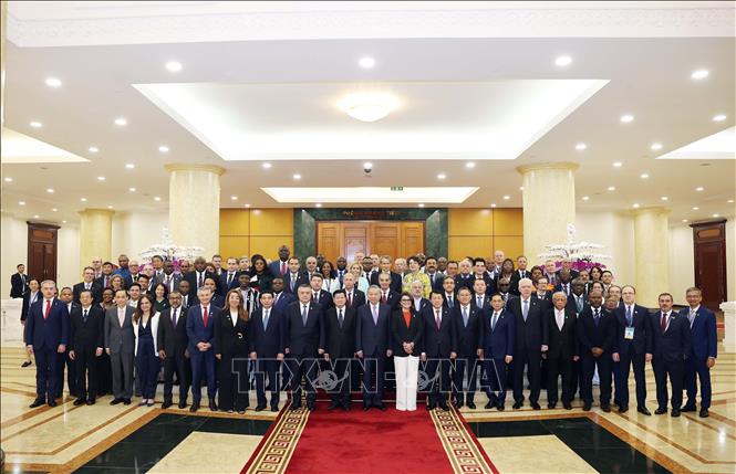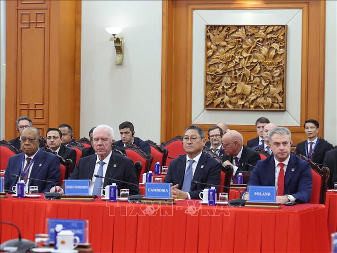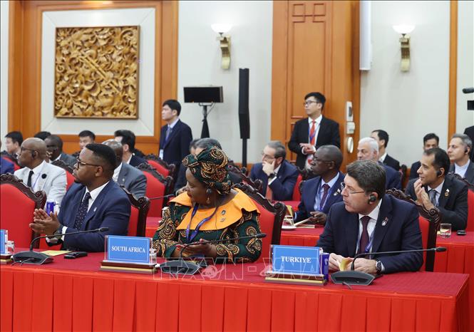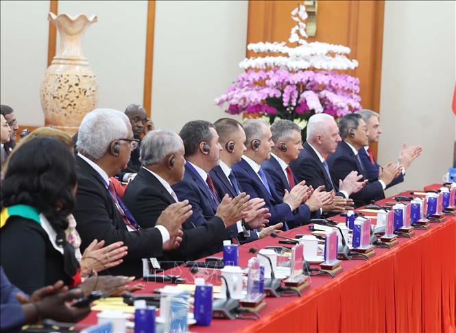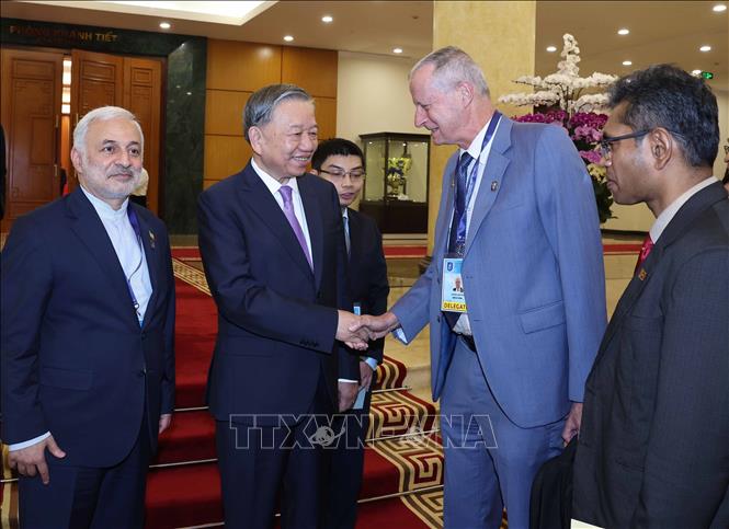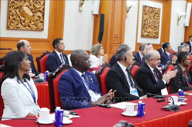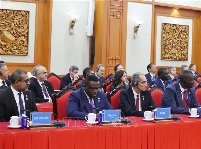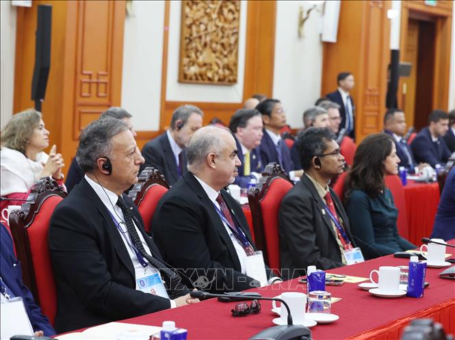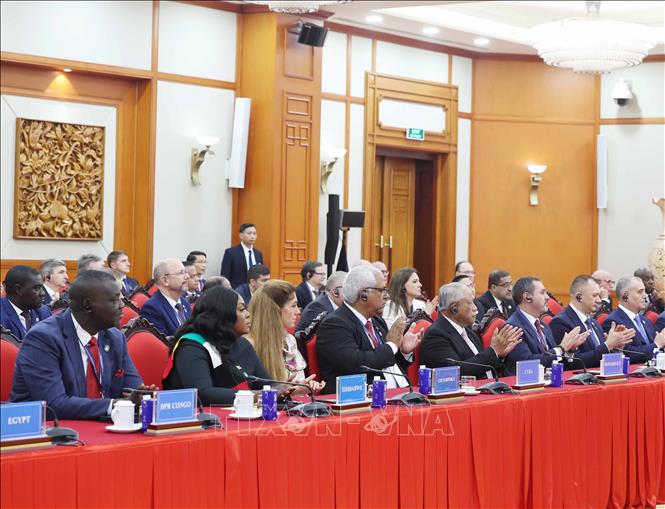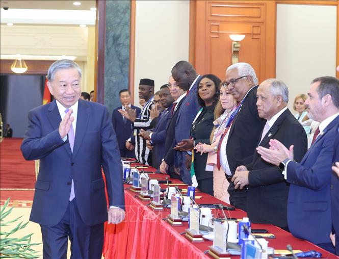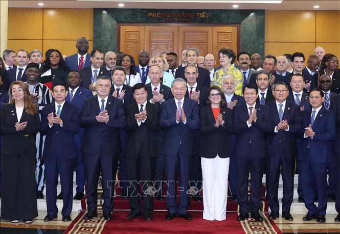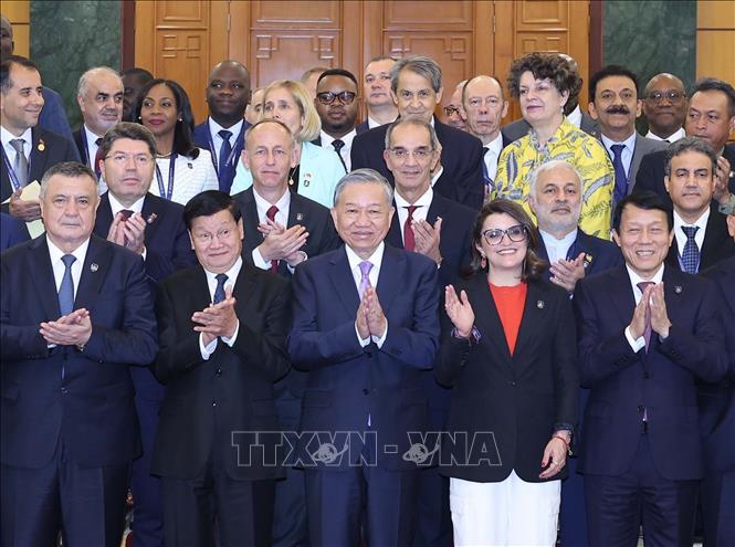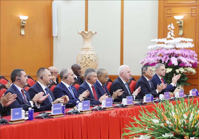 Trưởng đoàn các nước tham dự Lễ mở ký Công ước Hà Nội tham dự cuộc gặp Tổng Bí thư Tô Lâm. Ảnh: Thống Nhất – TTXVN