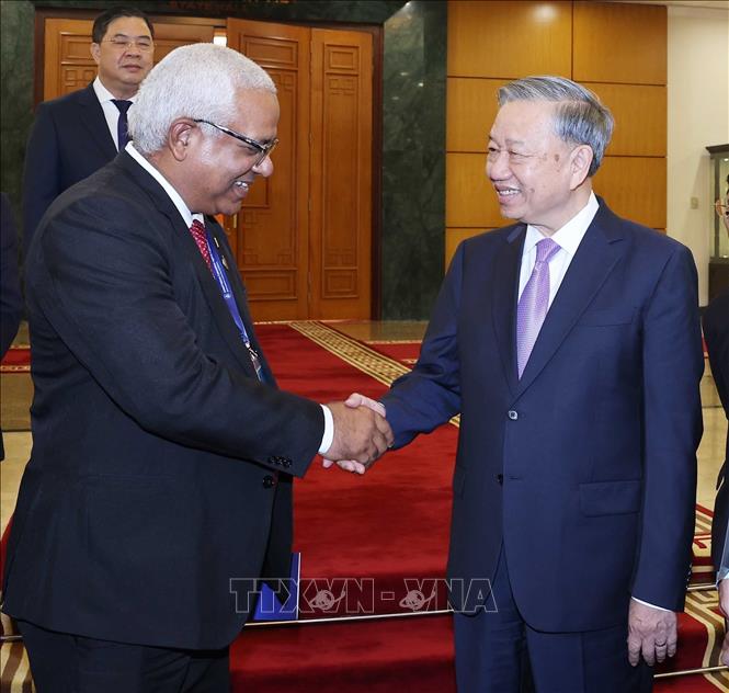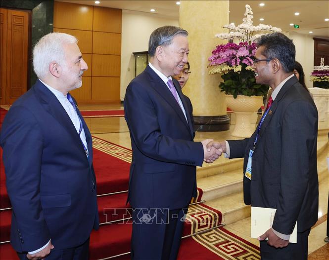 Tổng Bí thư Tô Lâm tiếp Trưởng đoàn các nước tham dự Lễ mở ký Công ước Hà Nội. Ảnh: Thống Nhất – TTXVN