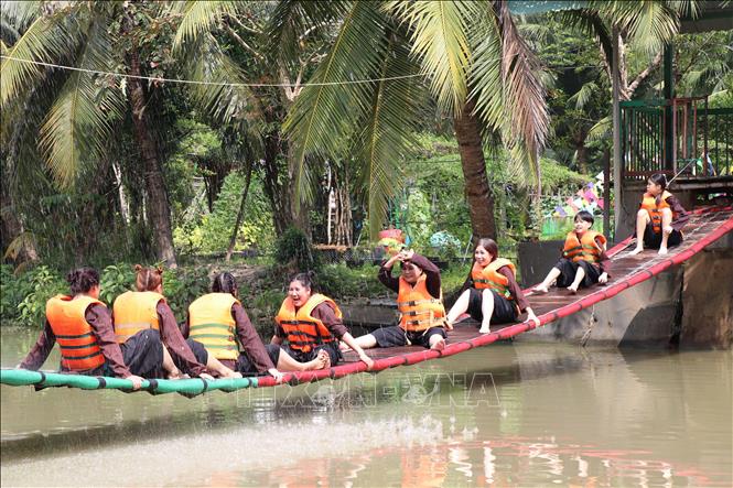 Khu Du lịch Lan Vương (phường An Hội, tỉnh Vĩnh Long) là một trong 25 điểm du lịch tiêu biểu Đồng bằng sông Cửu Long của tỉnh Vĩnh Long. Đến đây, du khách được trải nghiệm du lịch sinh thái miệt vườn, hái trái cây cùng nhiều trò chơi dân gian: Chèo xuồng, tát mương bắt cá, đi cầu khỉ, tham gia các trò chơi tập thể... Ảnh: Thanh Hòa - TTXVN